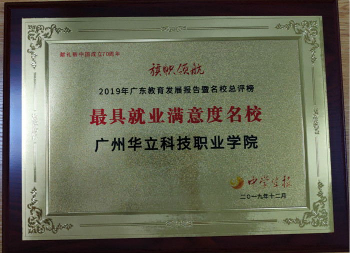 旗幟領(lǐng)航·2019廣東教育發(fā)展報告暨名校巡禮——學(xué)校榮獲“最具就業(yè)滿意度名?!钡仁鈽s