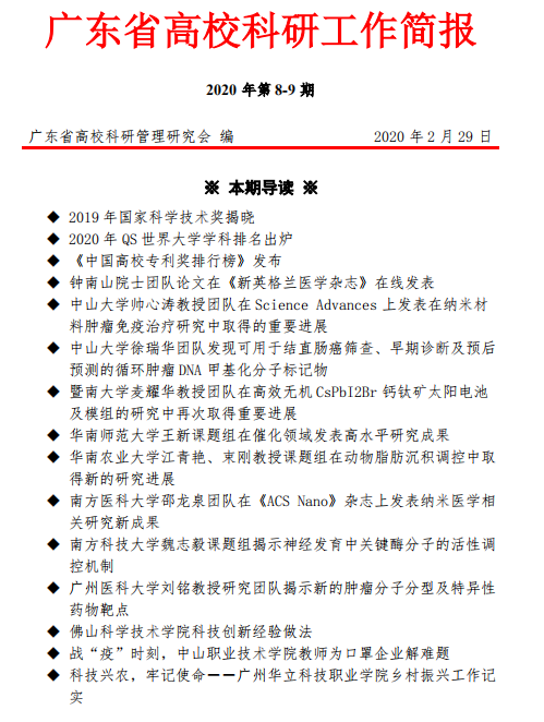 近日,由廣東省高??蒲泄芾硌芯繒?huì)代表省教育廳發(fā)布的《廣東省高??蒲泄ぷ骱唸?bào)》(2019年第8-9期)中重點(diǎn)報(bào)道了我?!翱萍寂d農(nóng),鄉(xiāng)村振興”工作進(jìn)展情況。