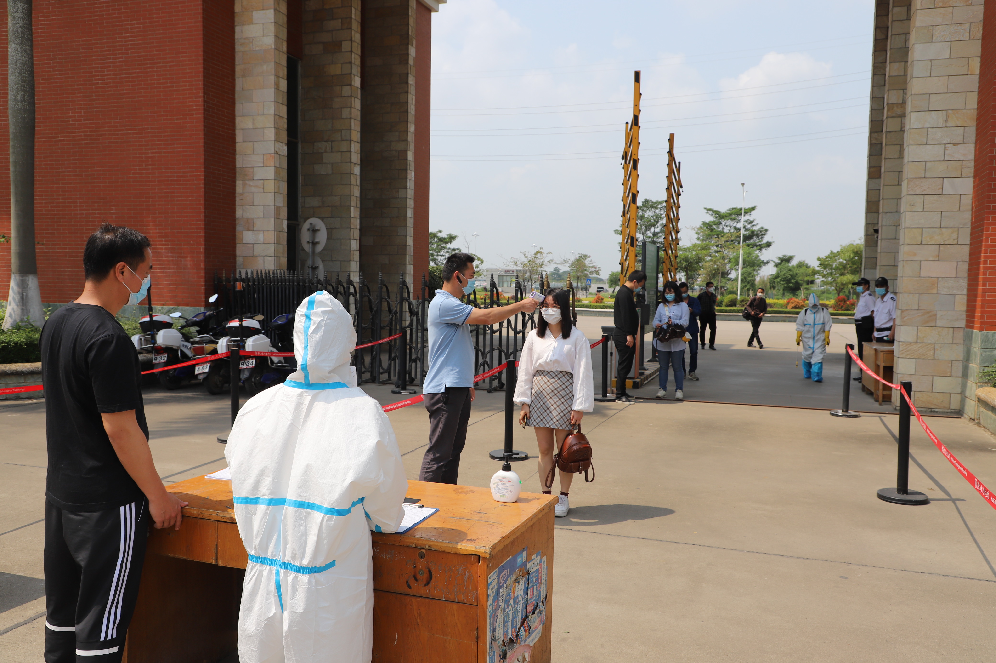 模擬演練活動采取自導自演的方式進行,主要分為校園師生日常活動和應急處置兩大部分。每個模擬演練場景均由校領導擔任演練指揮,相關單位負責人擔任演練副指揮。演練中,工作人員實景模擬演練了學生開學返校入校前體溫檢測,疫情接報與初步核實,疫情報告,疫情確診后的處置等學生開學返校入校前演練、體溫篩查演練、患者轉運演練、跟蹤處置演練等―系列應急處置工作演練。