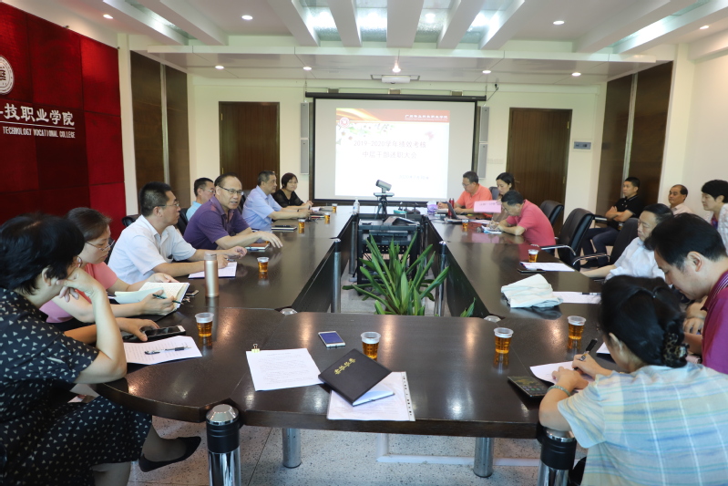 會議采取現(xiàn)場述職和書面述職相結(jié)合的形式。各職能部門、教學(xué)單位中層正副職干部按順序進行述職,從部門“531”指標完成情況、工作突出亮點、存在問題及主要原因、新學(xué)年工作思路四個方面,總結(jié)匯報了個人和部門2019-2020年度履職情況。