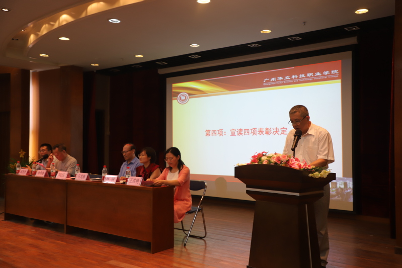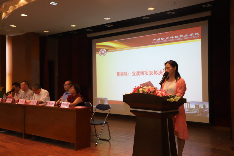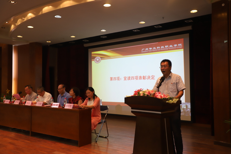 劉莊校長宣讀《廣州華立科技職業(yè)學院關于表彰2020年度校級教學名師的通知》,馬俊副校長宣讀《廣州華立科技職業(yè)學院關于表彰華立園人才強校工程2019-2020學年度優(yōu)秀教師、優(yōu)秀管理者的決定》,高堯來副校長宣讀《廣州華立科技職業(yè)學院關于表彰2019-2020學年度優(yōu)秀輔導員、優(yōu)秀學生工作者的決定》,王洪艷校長助理宣讀《廣州華立科技職業(yè)學院關于表彰2019-2020學年度招生工作先進個人的決定》。