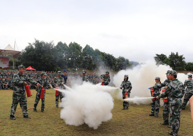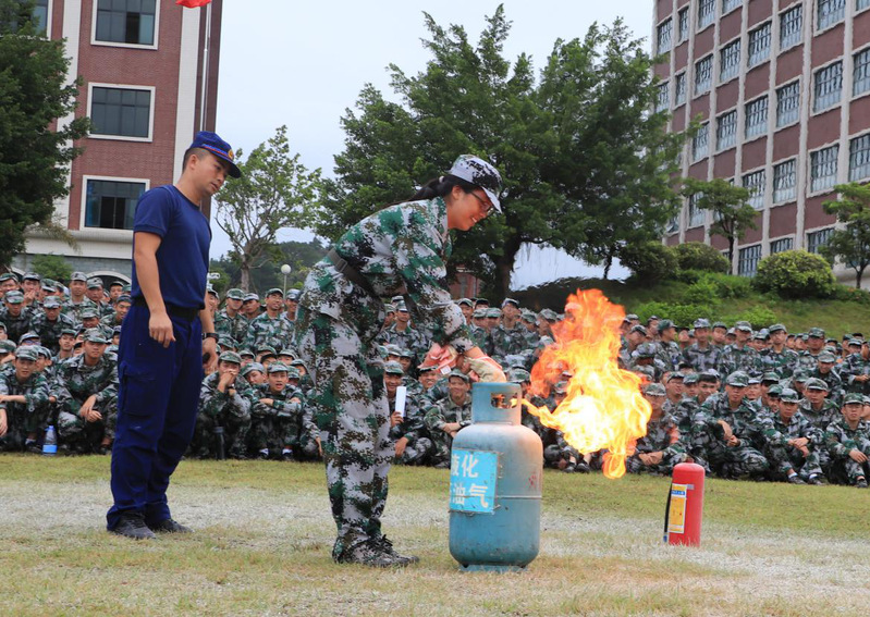 同學們進行了模擬火災疏散急救,親自體驗現(xiàn)場滅火的過程。面對熊熊燃燒的火堆,學生代表神情專注、沉著應對,熟練地按照滅火的步驟和方法,將汽油燃起的濃煙大火成功的迅速撲滅。