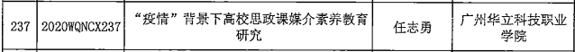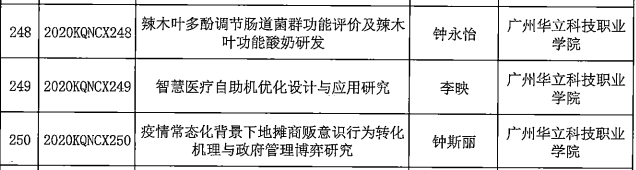 根據(jù)《廣東省教育廳關(guān)于公布2020年度普通高校認(rèn)定類(lèi)科研項(xiàng)目立項(xiàng)名單的通知》(粵教科函〔2020〕6號(hào)),我校有8項(xiàng)課題獲得立項(xiàng),這些項(xiàng)目將為我校“創(chuàng)新強(qiáng)校工程”建設(shè)及學(xué)校的內(nèi)涵式發(fā)展發(fā)揮較大的作用,增強(qiáng)我校教職工開(kāi)展科研創(chuàng)新的主動(dòng)性和積極性,提升我校自主創(chuàng)新能力。