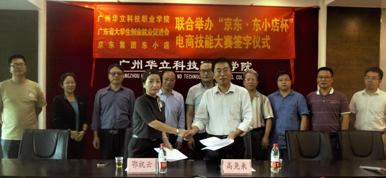 2020年10月11日下午,廣州華立科技職業(yè)學(xué)院舉行校企合作簽約儀式。廣東省大學(xué)生創(chuàng)業(yè)就業(yè)促進會會長蔣宗驍,京東集團東小店精英店長、廣州城市推廣大使鄂祝云;我校黨委副書記、副校長高堯來,管理學(xué)院院長溫偉勝、教務(wù)處副處長何志宏、校企合作處負責(zé)人鐘文浩等參加簽約儀式。簽約儀式由我校校企合作處負責(zé)人鐘文浩主持。