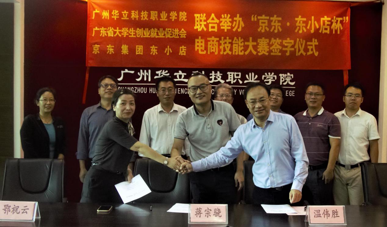 隨后,在熱烈的氣氛中,我校與京東集團東小店簽訂了《大學(xué)生校外實踐教學(xué)基地協(xié)議書》,與廣東省大學(xué)生創(chuàng)業(yè)就業(yè)促進會、京東集團東小店簽訂了政校企三方聯(lián)合舉辦“京東·東小店杯”電商技能大賽協(xié)議書。