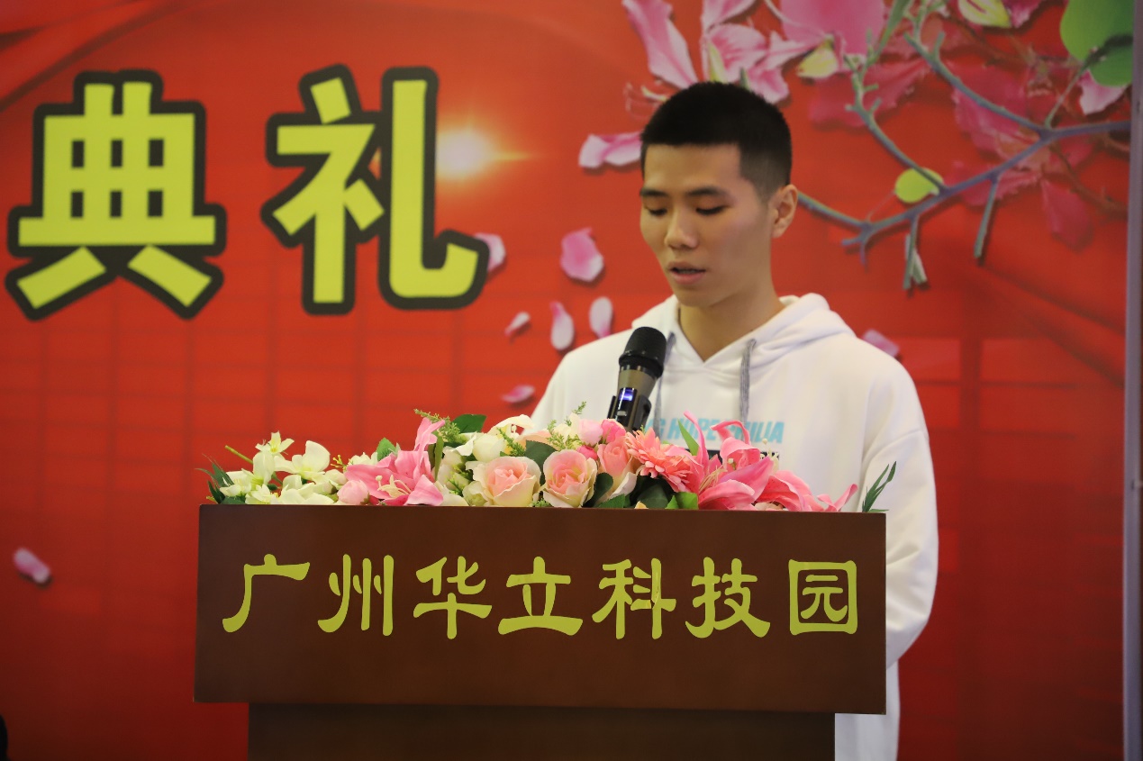 新生代表謝栩東代表全體新生發(fā)言。他感謝黨和國家給的這次機會,并表示將會努力完成學業(yè)、積極獲得學歷的決心和愿望。