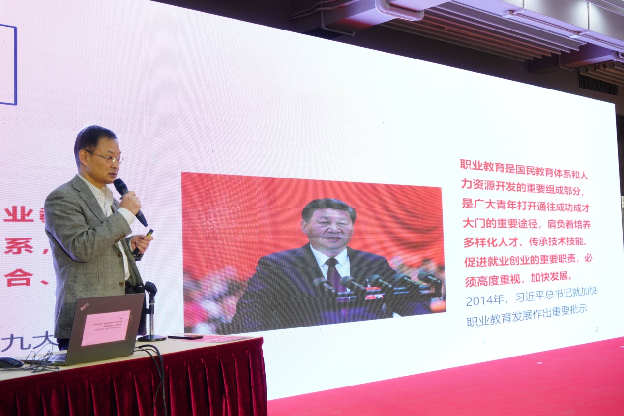 會議最后,深圳職業(yè)技術(shù)學(xué)院副校長馬曉明做了題為《深化產(chǎn)教融合、校企合作,共建高水平專業(yè)群》的精彩講座,馬校長結(jié)合深職院在“產(chǎn)教融合、校企合作”方面的做法和經(jīng)驗,從“對接產(chǎn)業(yè)設(shè)置專業(yè)”“實行專業(yè)動態(tài)調(diào)整”“校企共建一流專業(yè)”“一流專業(yè)建設(shè)思考”四個方面進(jìn)行了詳細(xì)介紹。他強(qiáng)調(diào),高職院校要圍繞戰(zhàn)略新興產(chǎn)業(yè)、未來產(chǎn)業(yè)進(jìn)行布局,并且不斷完善動態(tài)調(diào)整機(jī)制,優(yōu)化專業(yè)結(jié)構(gòu),并以深職院信息通信技術(shù)專業(yè)與深圳華為技術(shù)有限公司的合作為例,詳細(xì)闡述了校企合作的方式及其對專業(yè)建設(shè)乃至學(xué)校發(fā)展所產(chǎn)生的巨大促進(jìn)作用,由校企合作成果之一的“課證共生共長”談及2017年申報國家級教學(xué)成果獎,分享了期間的心路歷程和感悟體會。他指出,要做好產(chǎn)教融合、校企合作,“內(nèi)在需求”是前提,“畢業(yè)生質(zhì)量”是核心,“文化相融”是基礎(chǔ),“課程體系”是內(nèi)容,“強(qiáng)強(qiáng)合作”是保證。