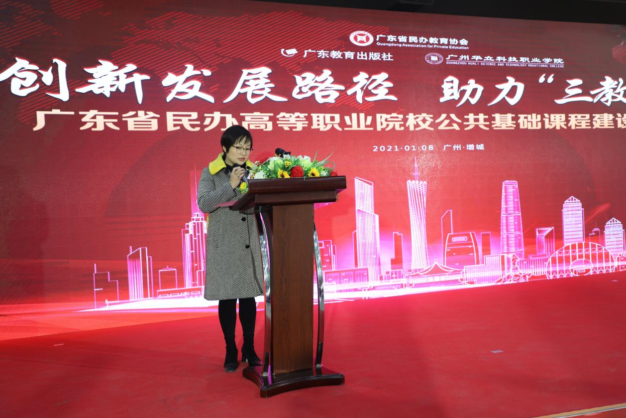 作為本次會議的承辦方和公共基礎(chǔ)課程建設(shè)的先行者,廣州華立科技職業(yè)學(xué)院計算機(jī)信息工程學(xué)院院長王建華在會上做了主題經(jīng)驗分享,就民辦職業(yè)院校公共基礎(chǔ)課程怎么開、怎么上課、用什么教材上課。2020年,廣州華立科技職業(yè)學(xué)院攜手廣東省內(nèi)外四十余所高校,包括多所“雙高計劃”學(xué)院、省級示范校,共同編寫了一整套公共基礎(chǔ)課程系列教材,包括《勞動教育》《中華優(yōu)秀傳統(tǒng)文化教程》《創(chuàng)新創(chuàng)業(yè)理論與實務(wù)》《人工智能技術(shù)與應(yīng)用》《信息技術(shù)應(yīng)用基礎(chǔ)》《體育與健康》《健康教育教程》《應(yīng)用寫作教程》《職業(yè)生涯規(guī)劃與就業(yè)指導(dǎo)》《高等數(shù)學(xué)教程》《心理健康教育與發(fā)展》《數(shù)字媒體技術(shù)概論》等12本教材,既滿足了公共基礎(chǔ)必修課程的教學(xué)需要,又對勞動教育、人工智能等具有中國特色社會主義教育特色和時代特征的新型特色課程做出了積極探索。