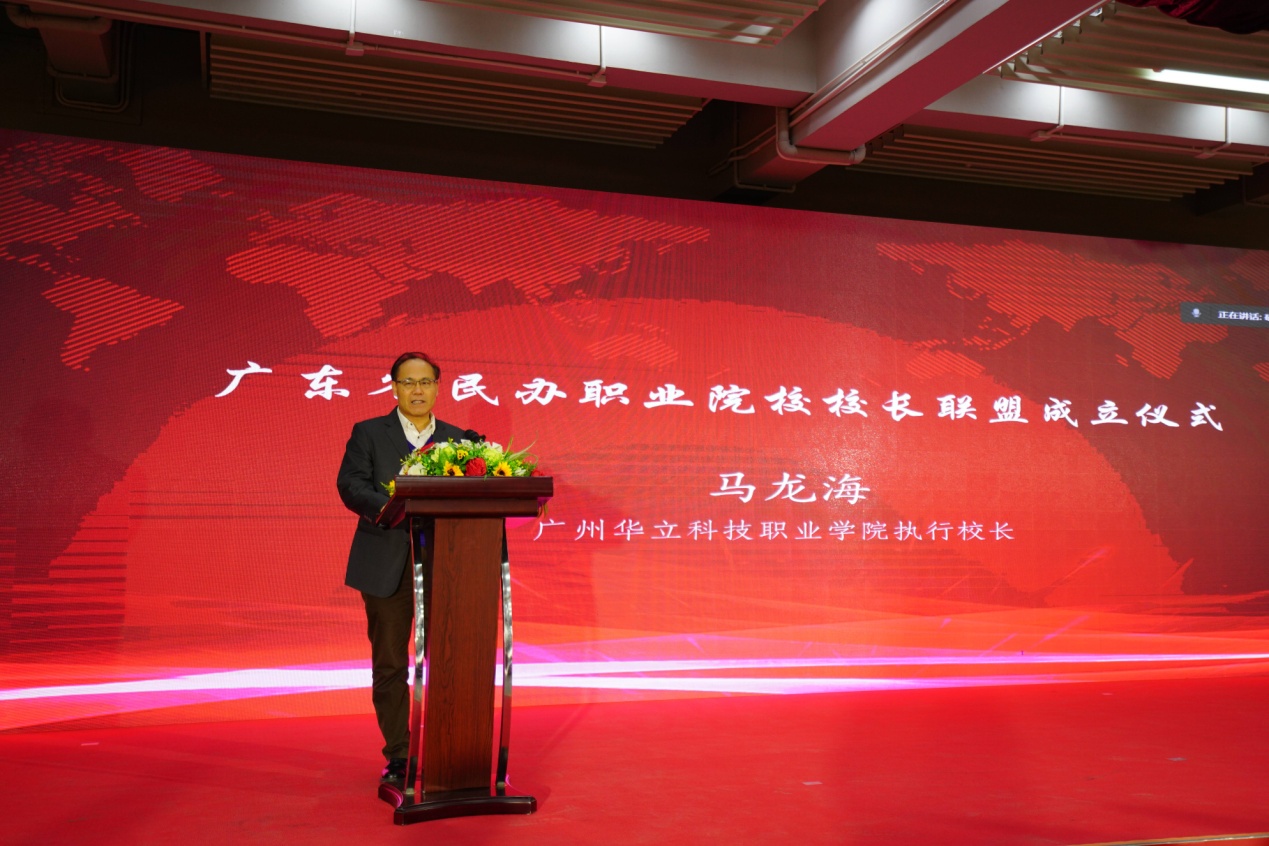 廣東省民辦職業(yè)院校校長聯(lián)盟執(zhí)行理事長單位、廣州華立科技職業(yè)學(xué)院執(zhí)行校長馬龍海在成立大會上發(fā)表講話。馬龍海執(zhí)行校長指出2021年開局之年,廣東省民辦教育面臨中國特色的現(xiàn)代職業(yè)教育體系的大變局,如何思變局,如何開新局,召開此次研討會則意義非凡。相關(guān)職業(yè)教育改革文件方案對職業(yè)教育未來的新格局做了明確的描述,下一步如何構(gòu)建縱向貫通、橫向融通的職業(yè)教育體系,三教改革就是一個切入點(diǎn)。馬龍海執(zhí)行校長詳細(xì)介紹了華立職院的相關(guān)改革措施以及實施效果,學(xué)校按照張智峰董事長的指示和要求,以立德樹人為根本,以學(xué)生成才為目標(biāo),構(gòu)建了以素質(zhì)培養(yǎng)為基礎(chǔ),以能力培養(yǎng)為核心的人才培養(yǎng)模式,以哲學(xué)、工程、人工智能、商務(wù)、美育/藝術(shù)和體育六類課程教學(xué)改革為引領(lǐng),首創(chuàng)了PEABAP核心素養(yǎng)提升課程體系,推行學(xué)生第二課堂成績單制度,極大提高了學(xué)生的學(xué)習(xí)積極性,取得了突出的教育教學(xué)成績,獲得了團(tuán)中央和社會認(rèn)可。