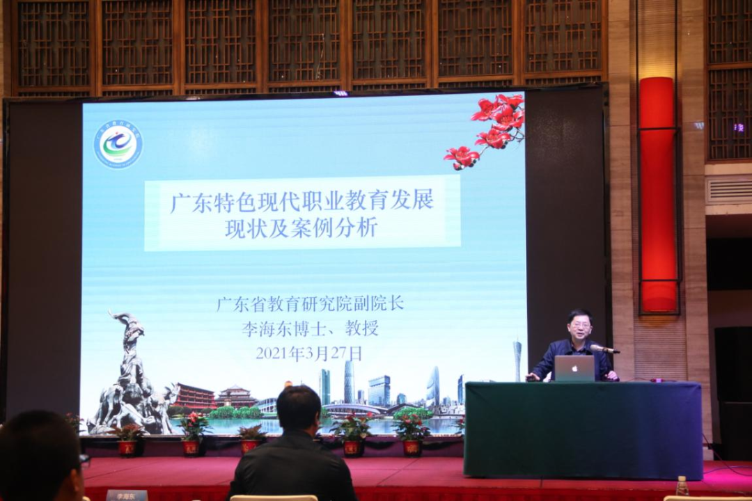會(huì)議特邀廣東省教育研究院副院長(zhǎng)李海東教授進(jìn)行專題學(xué)術(shù)講座。李海東教授以《廣東特色現(xiàn)代職業(yè)教育發(fā)展現(xiàn)狀及案例分析》為題,詳細(xì)分析了廣東現(xiàn)代職業(yè)教育的發(fā)展背景和發(fā)展現(xiàn)狀,并結(jié)合自身多年的研究和工作經(jīng)歷,深入分析了現(xiàn)代職業(yè)教育發(fā)展過(guò)程中的典型案例和經(jīng)驗(yàn)做法。