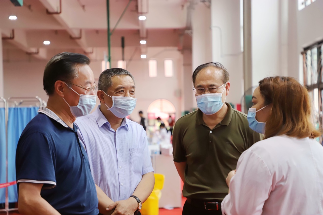 接種工作啟動后,校領(lǐng)導來到學校接種點,看望、鼓勵在場師生,關(guān)心、慰問一線工作人員和學生志愿者。