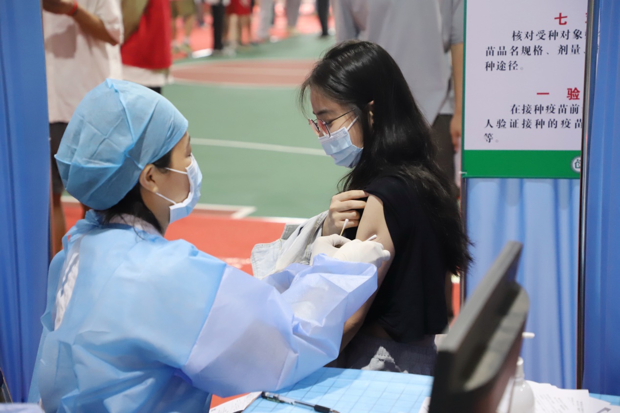 接種時,師生們在現(xiàn)場人員的指引下,有序排隊入場,經(jīng)體溫檢測、核對身份證、健康狀況咨詢、簽署知情同意書和做好查驗工作后,醫(yī)務(wù)人員開始給師生接種新冠病毒疫苗,接種后在留觀區(qū)觀察30分鐘,沒有任何不適方可按指示離場。