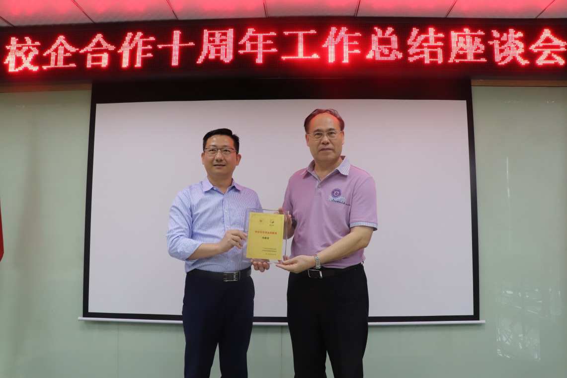 劉莊校長(zhǎng)為德永信公司頒發(fā)校企合作十周年紀(jì)念牌匾