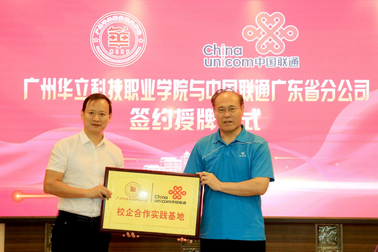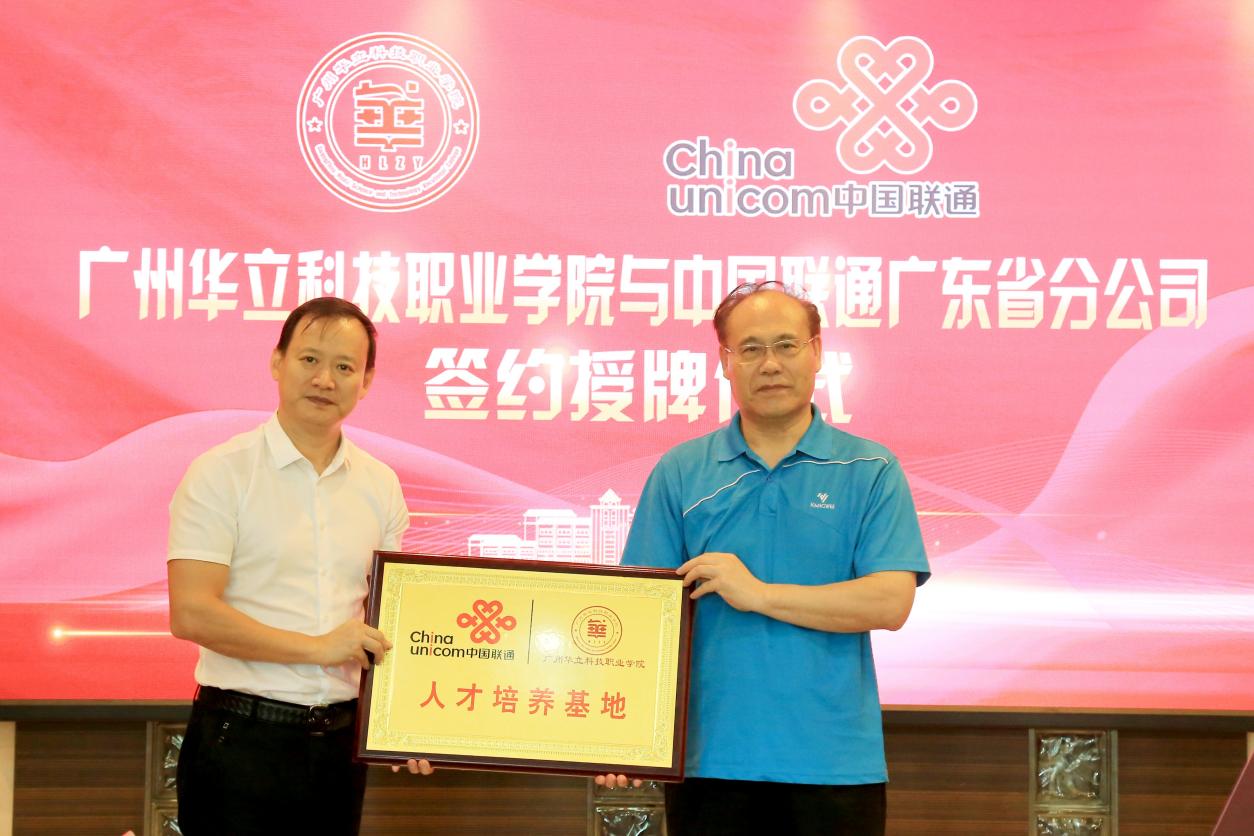 隨后,在參會(huì)人員的見證下,我校執(zhí)行校長(zhǎng)馬龍海與中國(guó)聯(lián)通廣東分公司喻凌陽(yáng)副總裁進(jìn)行了授牌儀式。