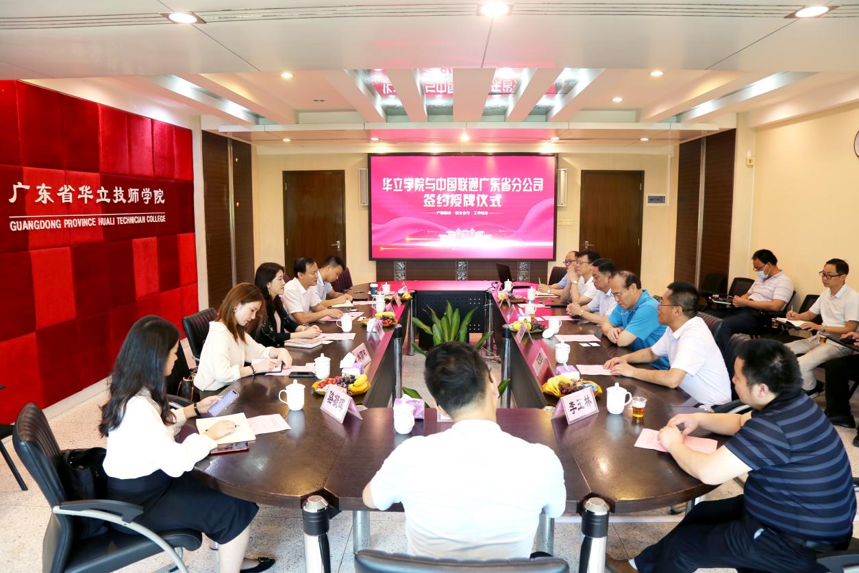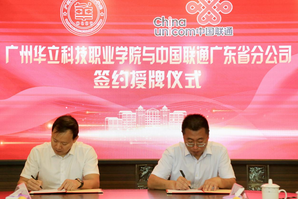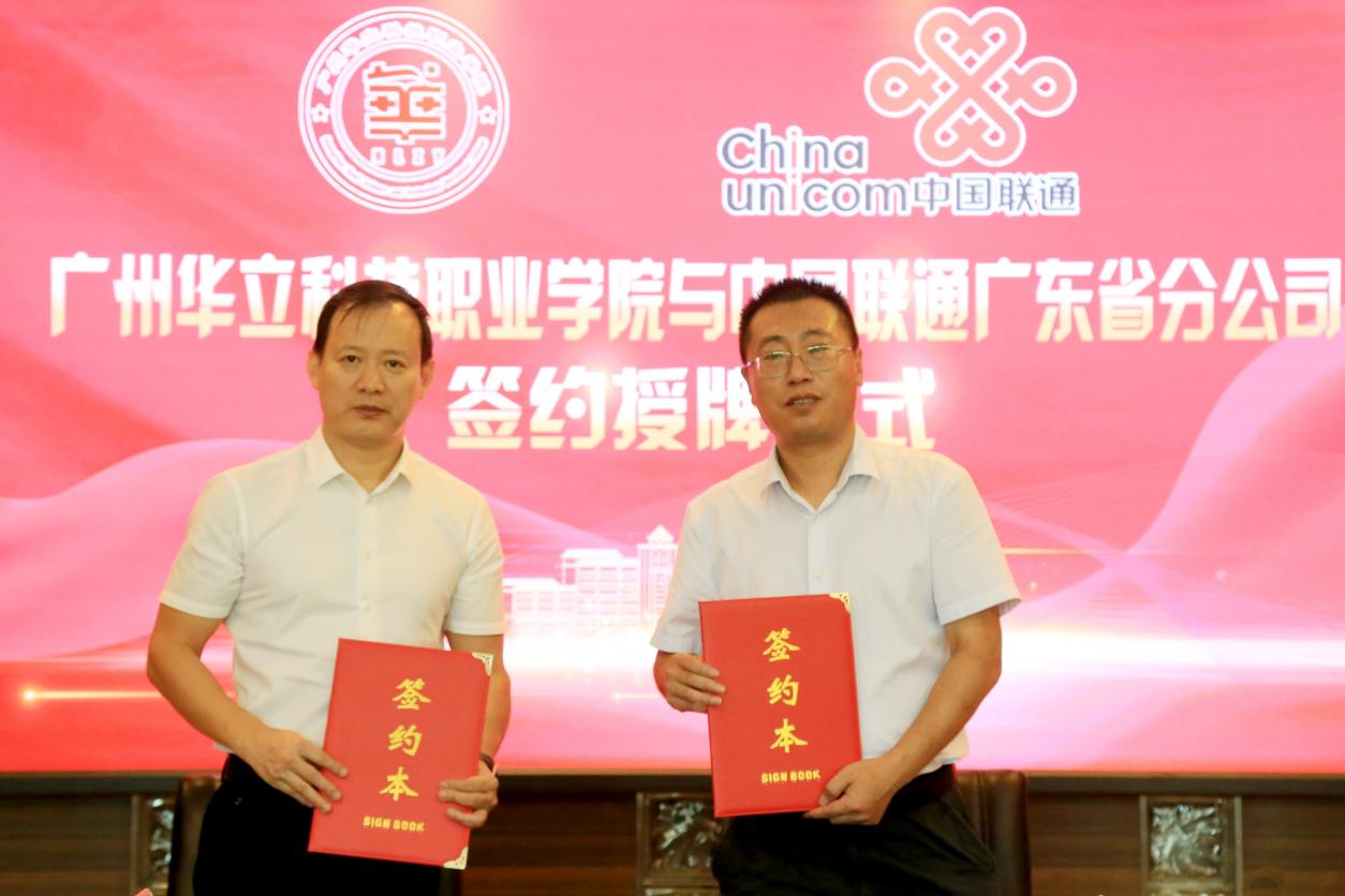 2021年5月12日上午,廣州華立科技職業(yè)學(xué)院與中國(guó)聯(lián)通(廣東分公司)校企合作簽約授牌儀式在廣州校區(qū)行政樓四樓會(huì)議室舉行。中國(guó)聯(lián)通廣東省分公司政企客戶事業(yè)群副總裁喻凌陽(yáng)、廣州市分公司政企客戶事業(yè)群BPO總監(jiān)蔡樂、廣東省分公司政企客戶事業(yè)群李熠、廣州市分公司政企客戶事業(yè)群BPO林麗敏、楊小燕、駱凝暉,我校執(zhí)行校長(zhǎng)馬龍海、副校長(zhǎng)高堯來、校企合作與就業(yè)管理處負(fù)責(zé)人鐘文浩以及兄弟院校相關(guān)領(lǐng)導(dǎo)出席了簽約儀式。