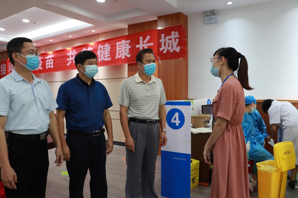 黃樂(lè)覽副校長(zhǎng)、易健民副校長(zhǎng)在現(xiàn)場(chǎng)檢查指導(dǎo)接種工作