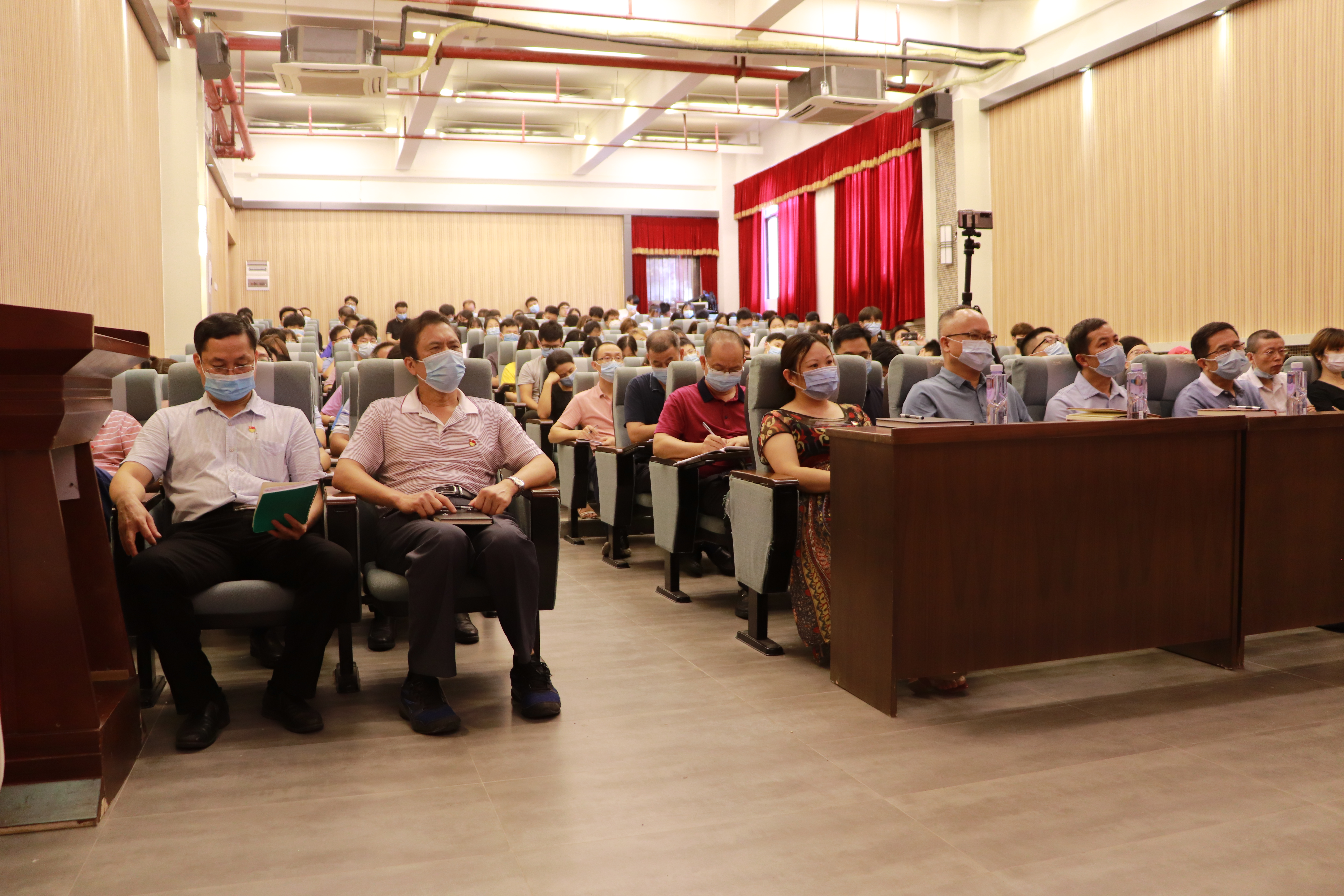 在“七一”建黨節(jié)來臨之際,為慶祝中國(guó)共產(chǎn)黨成立100周年,進(jìn)一步掀起黨史學(xué)習(xí)教育的熱潮,近日,我校云浮校區(qū)邀請(qǐng)?jiān)聘∈薪逃h工委書記,市教育局黨組書記、局長(zhǎng)梁道彬,為黨員教師、學(xué)生作了一場(chǎng)黨史學(xué)習(xí)教育專題黨課報(bào)告會(huì)。