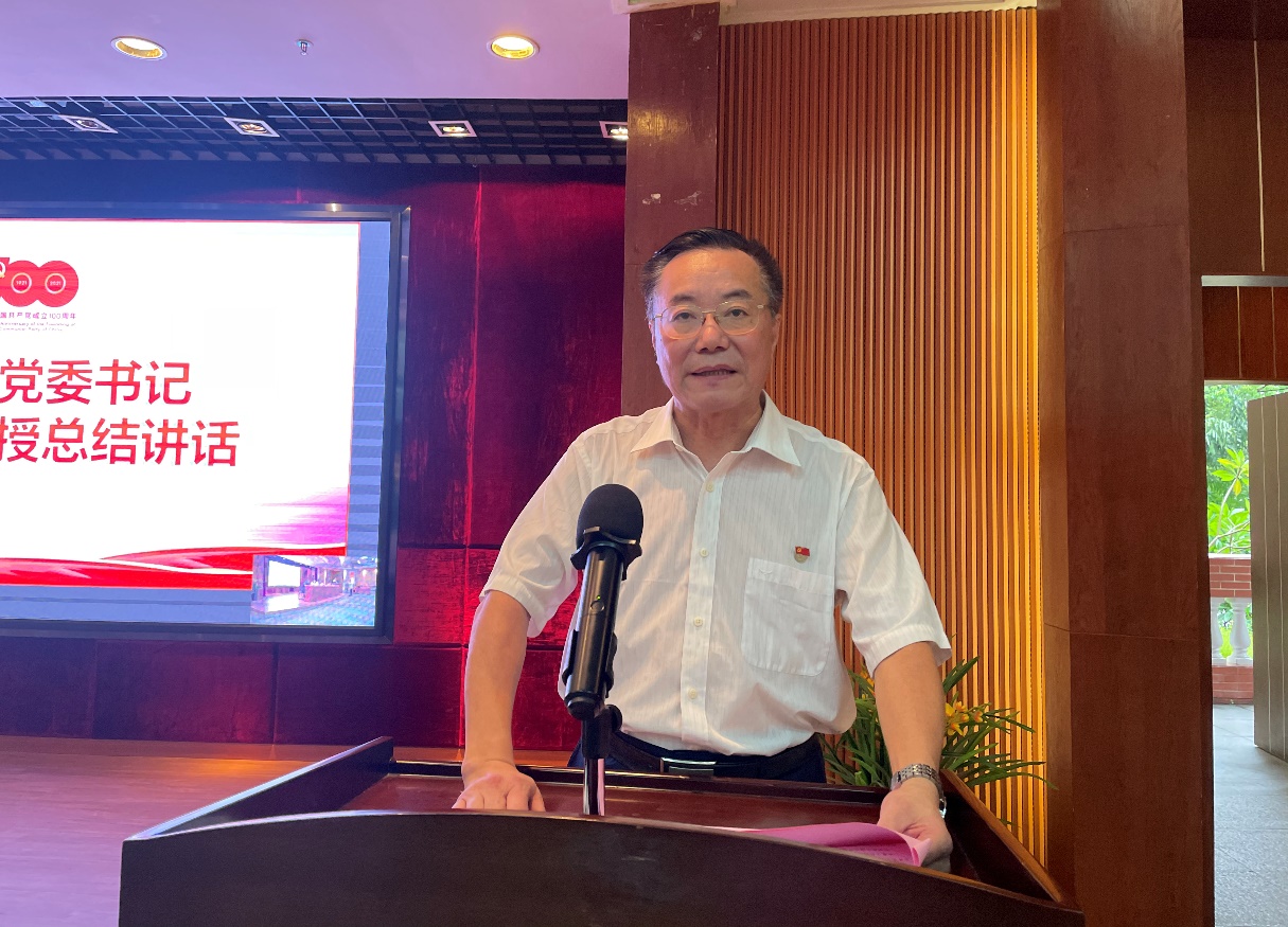最后,學校黨委書記林偉健教授作了總結講話。他對全校各條戰(zhàn)線上的全體黨員,致以節(jié)日的問候和良好的祝愿;回顧總結了我校一年來黨建工作取得的可喜成績并對今后黨建工作的開展提出了要求。林偉健書記指出,過去的一年,我校黨委班子認真學習和貫徹黨的十九屆四中、五中全會精神和習近平新時代中國特色社會主義思想,以創(chuàng)建高質量民辦高校為抓手,帶領全校黨員干部全面落實從嚴治黨、全面提升發(fā)展質量,發(fā)揮了黨委政治核心和領導核心作用。提高政治站位,狠抓基層組織建設,在新冠疫情防控中提升組織力,發(fā)揮黨員先鋒模范作用;加強黨員黨性教育,開展實踐活動激發(fā)黨員活力,推動黨史學習教育穩(wěn)步有序進行,為學校完成高質量發(fā)展提供了堅強的政治保障,保持了黨員的信念堅定,黨的陣地穩(wěn)固,傳承好了紅色基因,保持好學校穩(wěn)定發(fā)展大局。