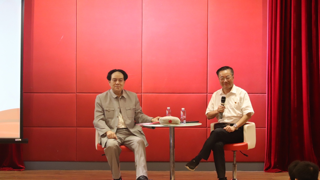 本次黨委書記思政第一課,形式獨(dú)特,別開生面。黨委書記林偉健教授與“毛主席”同登臺,以對話方式講課:解讀《為人民服務(wù)》,理解共產(chǎn)黨員的宗旨意識。開始講課時,琴石老師模仿毛澤東主席的湖南口音,先朗誦了毛主席的詩詞《七律.長征》《清平樂.六盤山》,然后表演了“人民萬歲”的情景片段,頓時歡聲雷動,讓師生們情不自禁產(chǎn)生了紅色回憶。接著,林偉健書記簡要介紹本次思政課的教學(xué)內(nèi)容、目的要求,并向大家強(qiáng)調(diào)了開展黨史學(xué)習(xí)教育、慶祝建黨一百周年的重大意義。隨后,琴石老師朗讀了毛主席的著作《為人民服務(wù)》;林書記介紹了《為人民服務(wù)》這篇著作產(chǎn)生的背景和張思德同志的生平及其在平凡崗位上為人民兢兢業(yè)業(yè)做貢獻(xiàn)的感人事跡。林偉健書記和琴石老師共同引經(jīng)據(jù)典,配合默契,相互補(bǔ)充,重點(diǎn)從為人民服務(wù)的宗旨意識、革命的生死觀和人生的價值、為了人民利益要堅(jiān)持好的改正錯的、要善于開展批評與自我批評、要善于搞五湖四海團(tuán)結(jié)一致共同奮斗等方面,為師生們生動詮釋了毛主席的《為人民服務(wù)》這一經(jīng)典著作。林書記向師生們強(qiáng)調(diào)指岀:千秋偉業(yè),百年風(fēng)華,我們一定要牢記中國共產(chǎn)黨曲折艱辛的輝煌歷史,要明確并樹立共產(chǎn)黨人的宗旨意識;當(dāng)代大學(xué)生要把人民利益放在首位,要通過各種方式為人民服務(wù),學(xué)好知識,報效社會,創(chuàng)造人生價值。