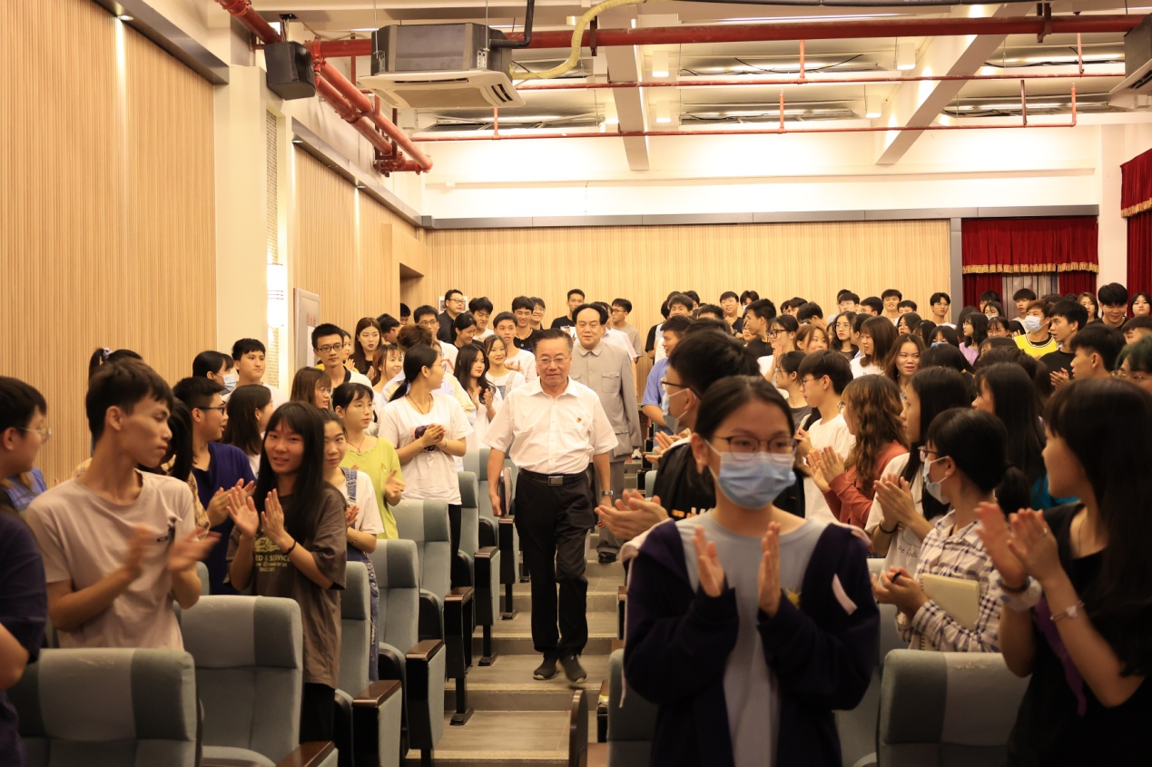 精辟的經(jīng)典解讀,獨(dú)特的授課方式,引起了現(xiàn)場師生們的共鳴,尤其是“毛主席”講毛主席著作,更是讓大家印象深刻。一個多小時的授課,師生們認(rèn)真聽講,全情投入,積極互動,興致勃勃。在現(xiàn)場的三位老黨員——林偉健書記、黃樂覽副校長和琴石老師,黨齡都超過四十五年。他們用自己的親身經(jīng)歷和感悟,對師生們語重心長地提出殷切期望,更是讓大家倍受感動。課堂氣氛熱烈,師生們反響更熱烈?,F(xiàn)場師生紛紛表示:有幸聆聽這樣形式新穎的思政課,收獲大,印象深,令人難忘。