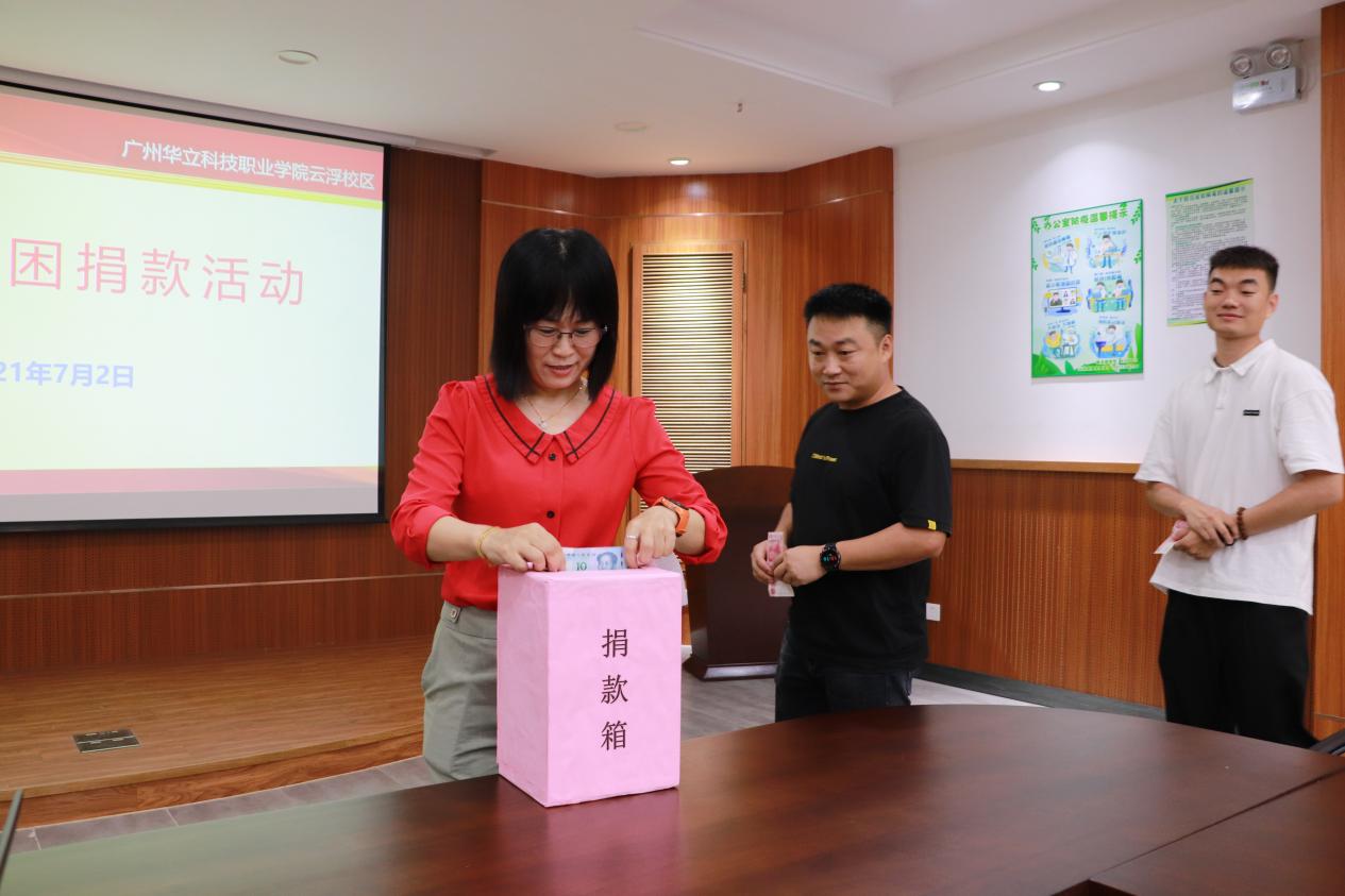 7月2日下午,我校廣州校區(qū)和云浮校區(qū)同時舉行扶貧濟困捐款活動,校長劉莊、執(zhí)行校長馬龍海、黨委書記林偉健、副校長、黃樂覽、馬俊、易健民、高堯來、校長助理王洪艷、郭仲先等領(lǐng)導(dǎo)帶頭積極帶頭捐款,各部門主要負(fù)責(zé)人和師生代表踴躍參與,紛紛把愛心善款投入到捐款箱,用實際行動參與扶貧濟困,為鞏固脫貧攻堅成果和全面推進鄉(xiāng)村振興工作貢獻(xiàn)一份力量,為貧困群眾送上一份愛心。