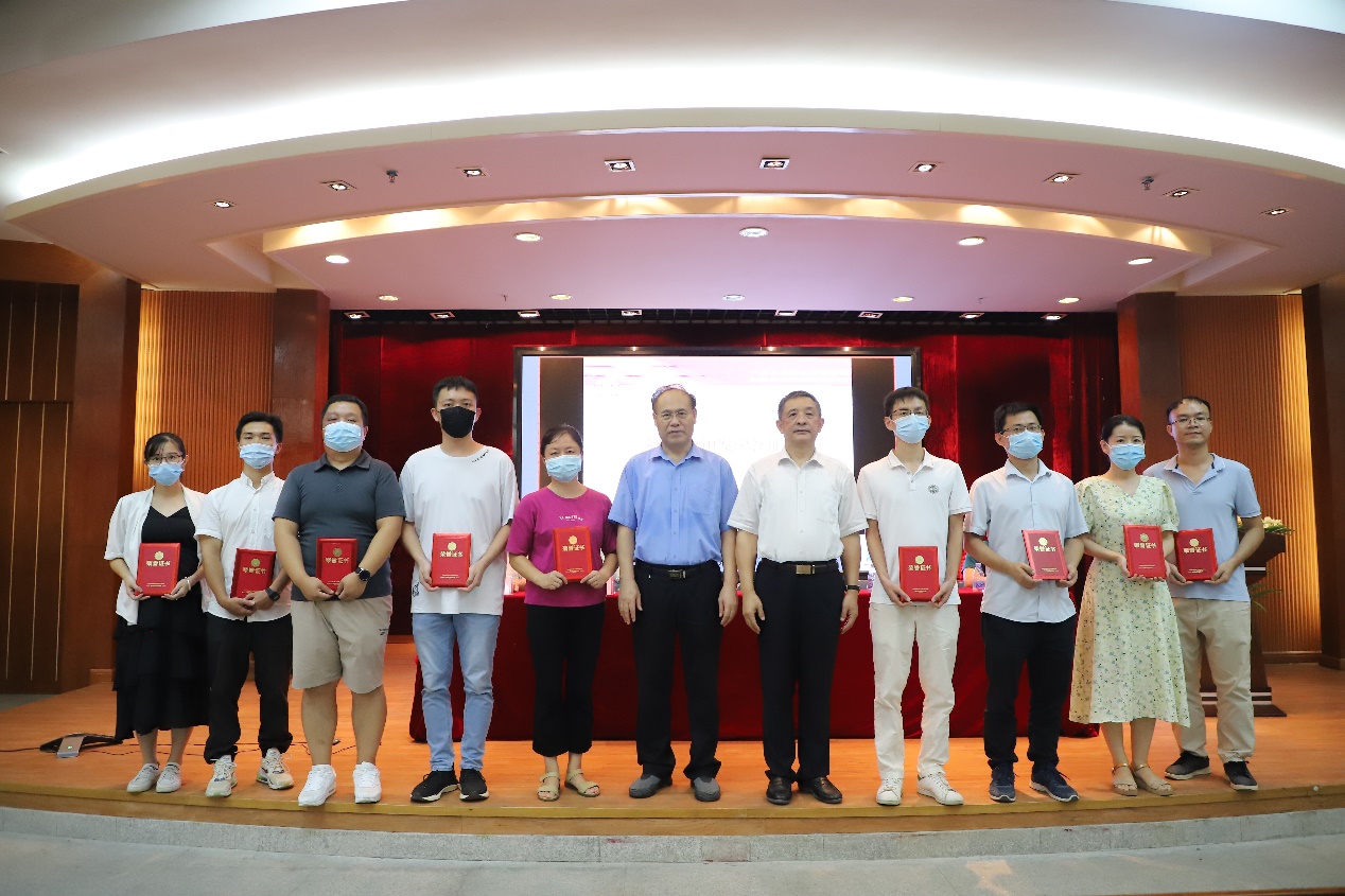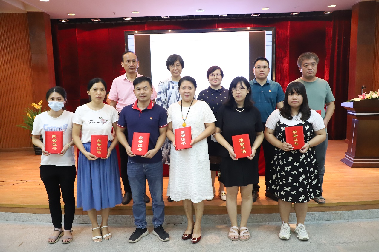 校領(lǐng)導(dǎo)向獲獎(jiǎng)的教師頒獎(jiǎng)。