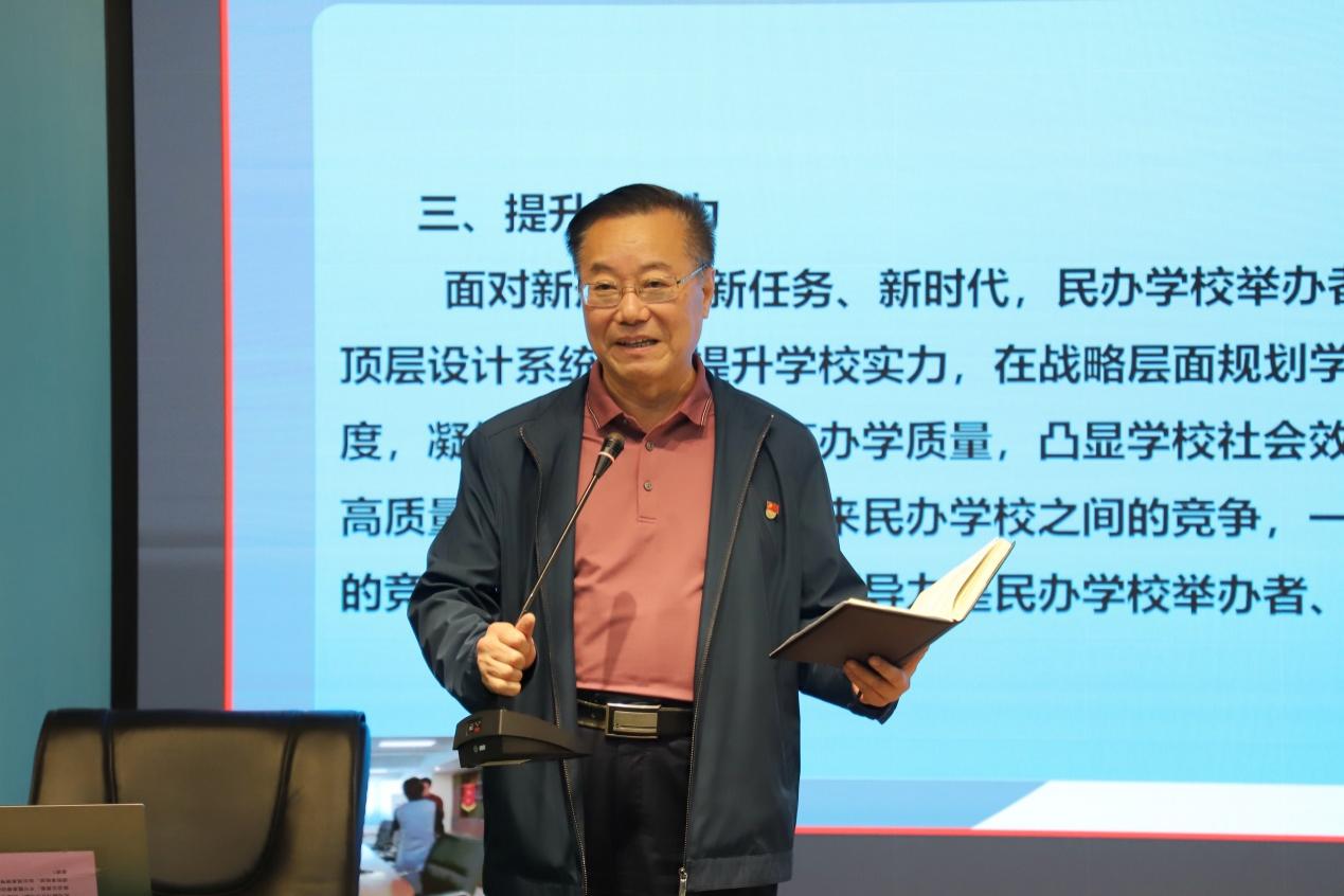 趙教授強調(diào),新法新政出臺,我們要順應(yīng)新潮流、擁抱新時代、開創(chuàng)新局面,準確把握《實施條例》的政策法律導向,全面加強黨對民辦學校的領(lǐng)導,堅持民辦教育的公益性,鼓勵和支持非營利辦學,轉(zhuǎn)變觀念,提高認識,提高政治站位,要提升戰(zhàn)略判斷力和領(lǐng)導力,提高法制意識,適應(yīng)新時代的發(fā)展,著力加強學校內(nèi)涵建設(shè),打造特色,大力促進我省民辦教育事業(yè)健康高質(zhì)量發(fā)展。殷切希望教師們深刻認識到職業(yè)教育的意義,要有培養(yǎng)學生 “德、智、體、美、勞”全面發(fā)展的教育情懷,為社會發(fā)展培養(yǎng)提供堅實的人才支撐。