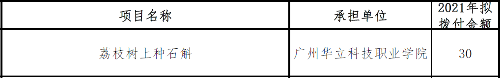 2021年10月22日,省科技廳發(fā)布了廣東省駐鎮(zhèn)幫鎮(zhèn)扶村農(nóng)村科技特派員項(xiàng)目(第一批)立項(xiàng)通知。我校沉香繁育研究所所長(zhǎng)、廣州市科普名師李向林教授團(tuán)隊(duì)提交的項(xiàng)目《荔枝樹上種石斛》獲得立項(xiàng),資助經(jīng)費(fèi)30萬元。