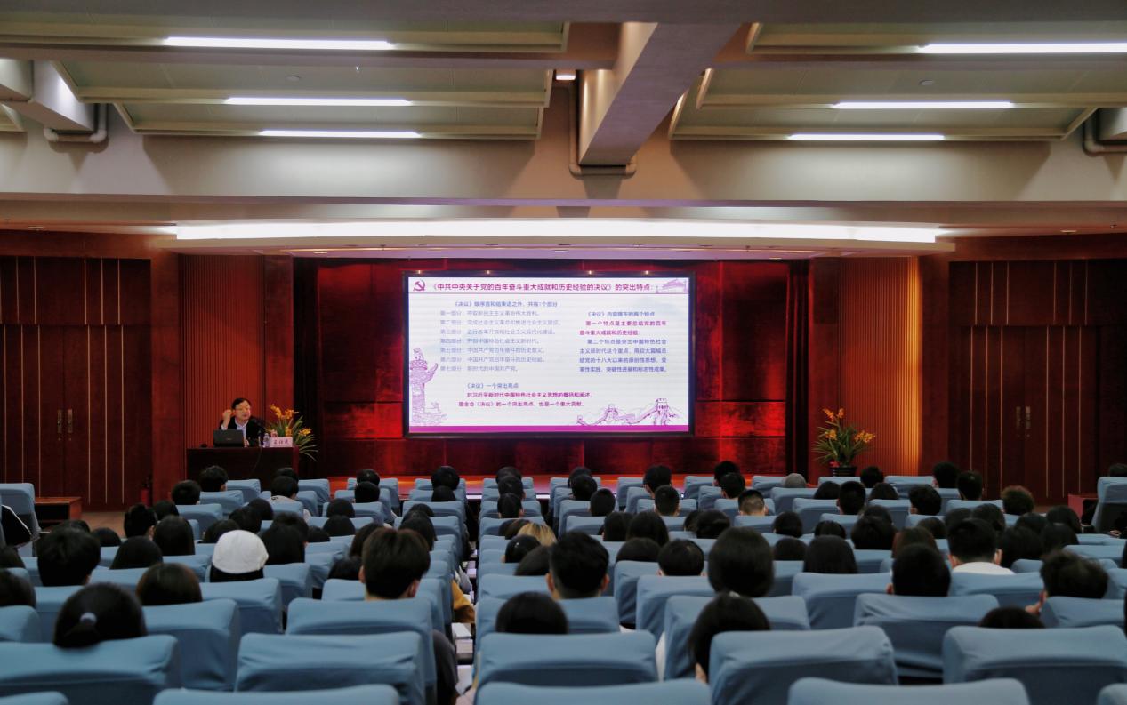 開班儀式后,中山大學(xué)博士生導(dǎo)師、我校馬克思主義學(xué)院院長(zhǎng)王仕民教授為本期入黨積極分子上了第一課,講授了《黨的十九屆六中全會(huì)精神解讀》,傳達(dá)了黨的十九屆六中全會(huì)會(huì)議精神,領(lǐng)學(xué)了《中共中央關(guān)于黨的百年奮斗重大成就和歷史經(jīng)驗(yàn)的決議》。黨的十九屆六中全會(huì)是在我們黨成立一百年之際,黨領(lǐng)導(dǎo)人民實(shí)現(xiàn)第一個(gè)百年奮斗目標(biāo)、向著實(shí)現(xiàn)第二個(gè)百年奮斗目標(biāo)邁進(jìn)的重大歷史關(guān)頭,召開的一次總結(jié)過去、展望未來的歷史性、戰(zhàn)略性重要會(huì)議。全會(huì)回顧百年奮斗歷程,總結(jié)重大歷史經(jīng)驗(yàn),具有重大而深遠(yuǎn)的意義。