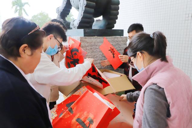 此外,學(xué)校書法協(xié)會(huì)舉行“寫春聯(lián)?送福氣”活動(dòng),一張張由學(xué)生們書寫的春聯(lián),凝聚著對(duì)中國優(yōu)秀傳統(tǒng)文化的熱愛和對(duì)春節(jié)的美好祝福,成為老師們手中最有“福氣”的年貨。