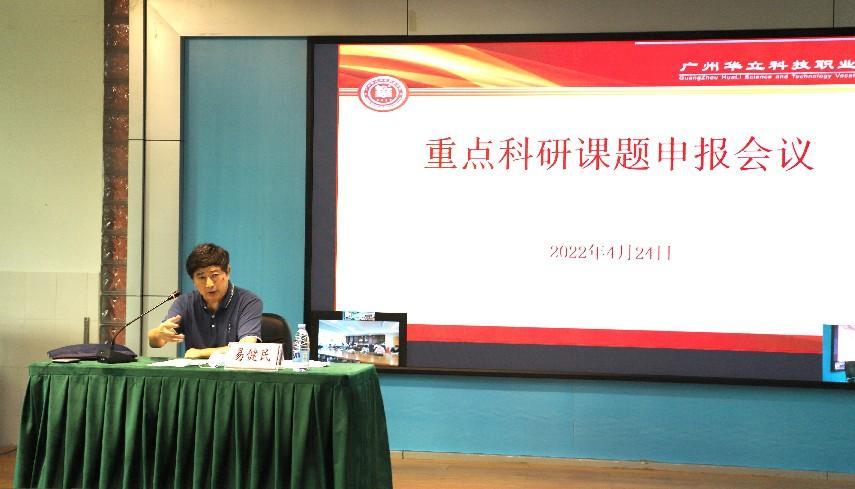 為進(jìn)一步推動我??萍佳芯抗ぷ鳎鋵?shí)《2021-2022學(xué)年學(xué)??蒲泄ぷ饕c(diǎn)》(華立職院〔2022〕26號)文件精神。2022年4月24日下午,在學(xué)校圖書館104報告廳召開重點(diǎn)科研項(xiàng)目申報動員會議。會議由易健民校長主持,各相關(guān)職能部門負(fù)責(zé)人、二級學(xué)院院長、學(xué)科帶頭人、教學(xué)副主任、系主任、副教授以上教師、博士參會。