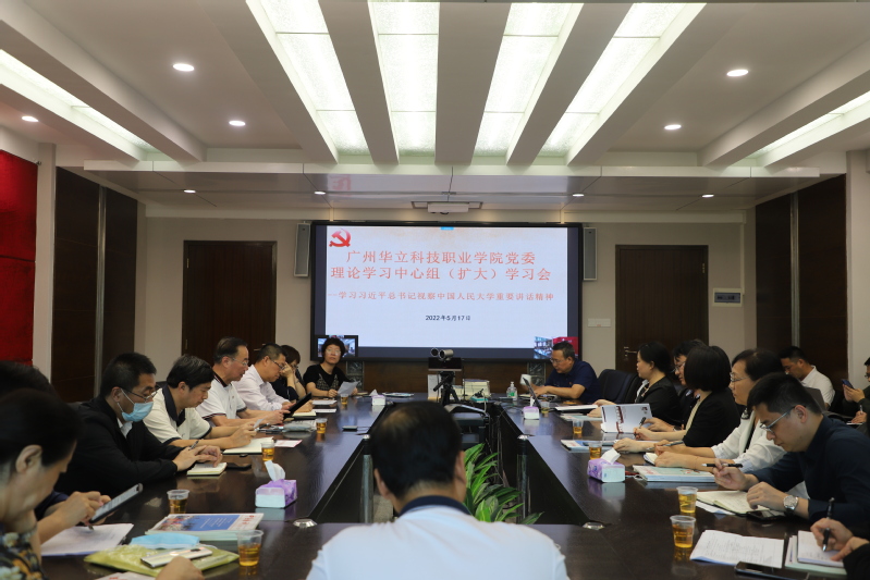 5月17日,廣州華立科技職業(yè)學(xué)院黨委在行政樓305會(huì)議室召開(kāi)理論中心組擴(kuò)大學(xué)習(xí)會(huì),傳達(dá)學(xué)習(xí)習(xí)近平總書(shū)記在中國(guó)人民大學(xué)考察時(shí)的重要講話精神,研究部署我校貫徹落實(shí)工作。學(xué)校黨委委員、校領(lǐng)導(dǎo)、中層干部、基層黨組織書(shū)記和馬克思主義學(xué)院全體思政教師參加學(xué)習(xí)會(huì),云浮校區(qū)以視頻連線形式學(xué)習(xí)。學(xué)校黨委書(shū)記林偉健教授主持會(huì)議。
