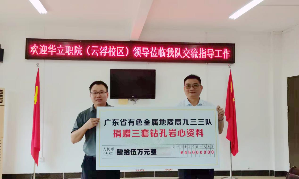 廣東省有色金屬地質局九三三地質隊向我校捐贈鉆孔巖芯教科研實訓資料