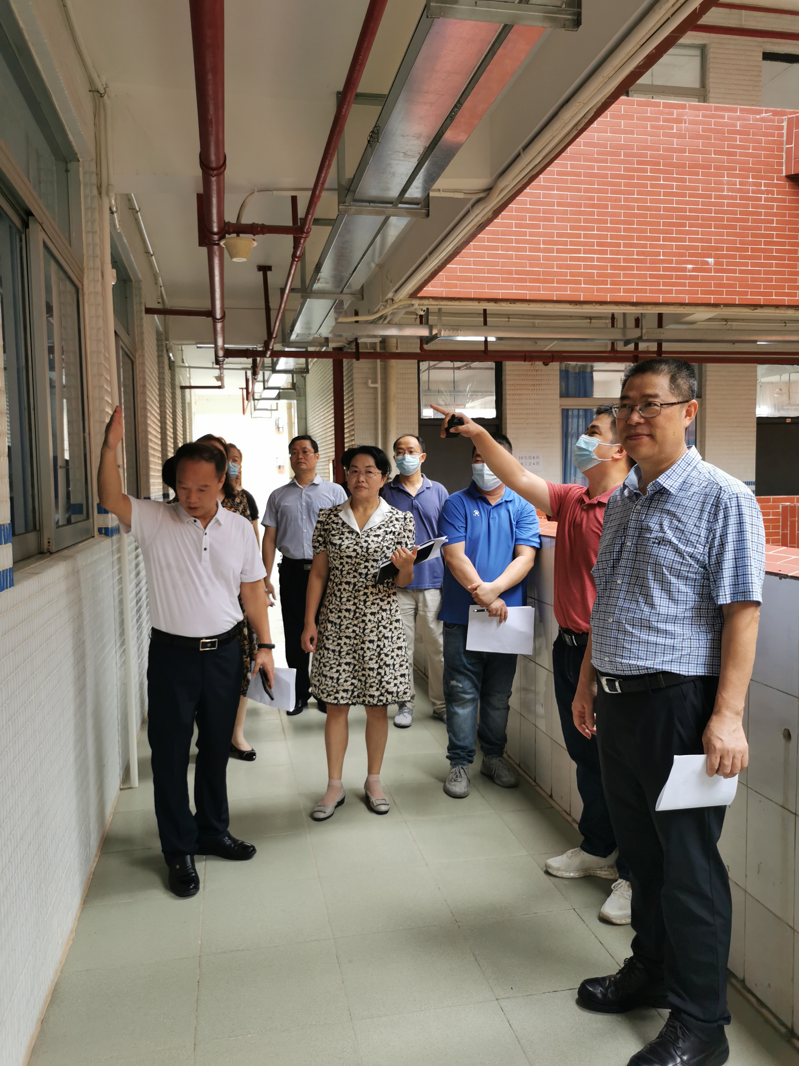 圖為檢查組前往西二實訓室教學樓檢查
