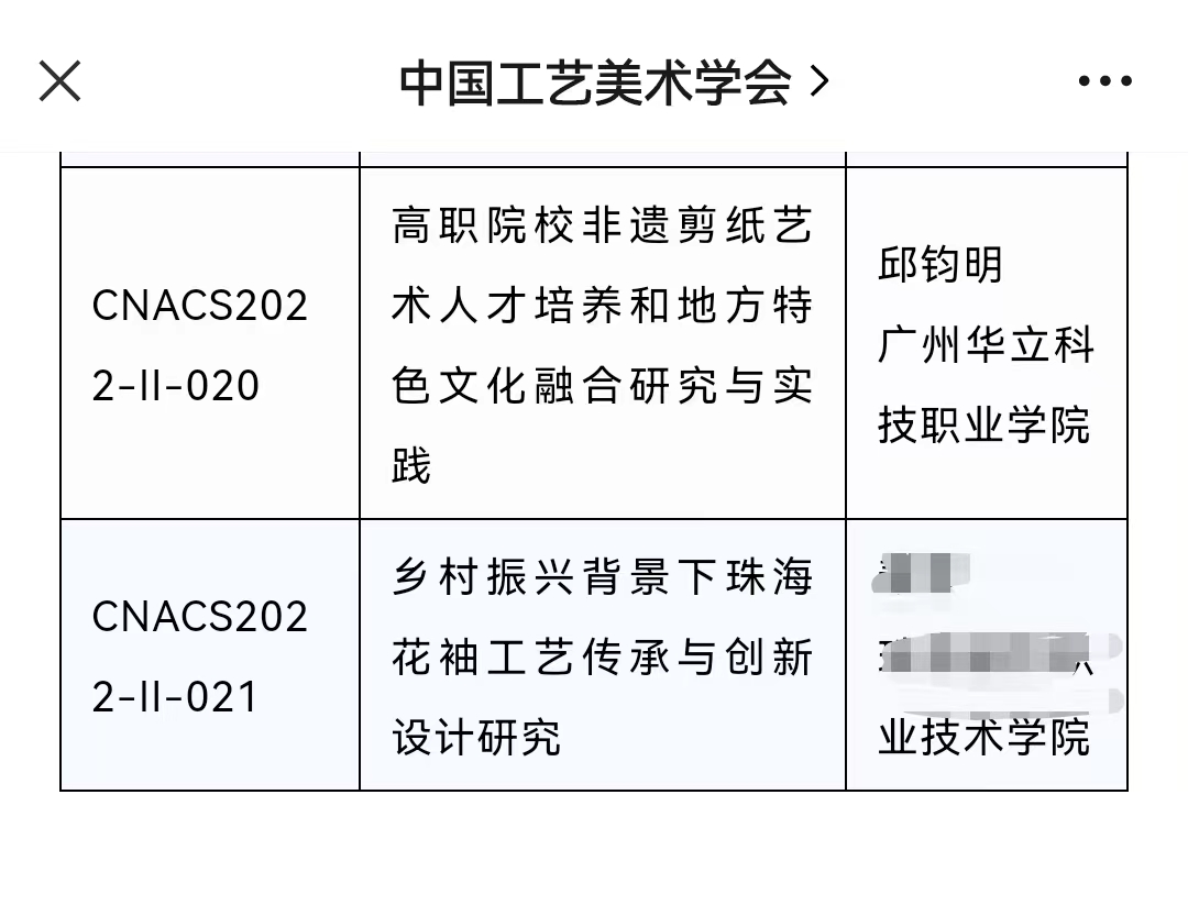近日,從中國工藝美術(shù)學(xué)會傳來喜訊,廣州華立科技職業(yè)學(xué)院教育學(xué)院邱鈞明老師申報(bào)的課題《高職院校非遺剪紙藝術(shù)人才培養(yǎng)和地方特色文化融合研究與實(shí)踐》獲得中國工藝美術(shù)學(xué)會2022年度工藝美術(shù)科研課題研究項(xiàng)目立項(xiàng)!
