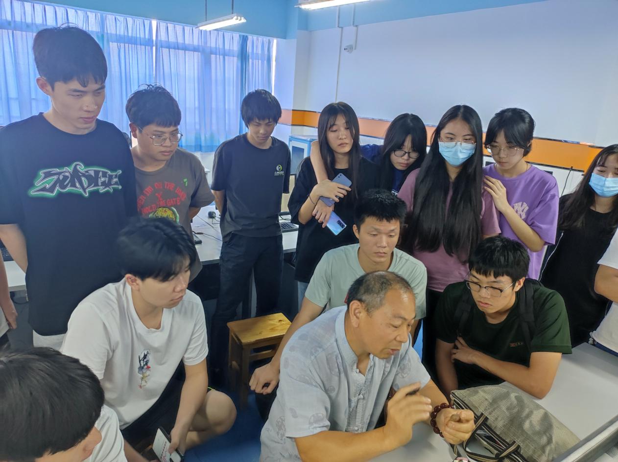 馬俊常務副校長為新生介紹欖雕傳承基地情況
