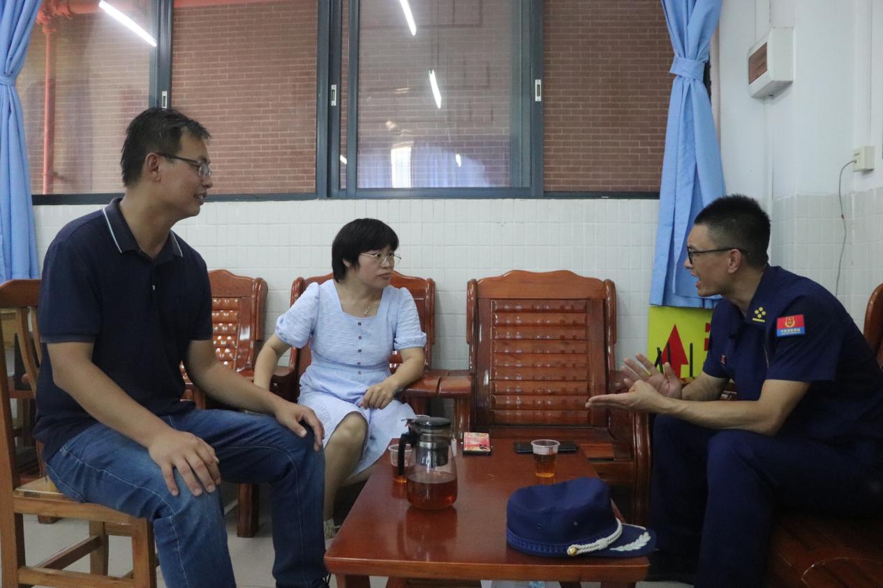 演練結(jié)束后,黨委副書記王洪艷、保衛(wèi)處副處長(zhǎng)董祥武還與云浮消防特勤隊(duì)長(zhǎng)陳偉強(qiáng)進(jìn)行了座談交流。雙方就學(xué)校消防深度培訓(xùn)、消防設(shè)施規(guī)范化建設(shè)、師生消防安全意識(shí)培養(yǎng)等方面進(jìn)行了深入交流。