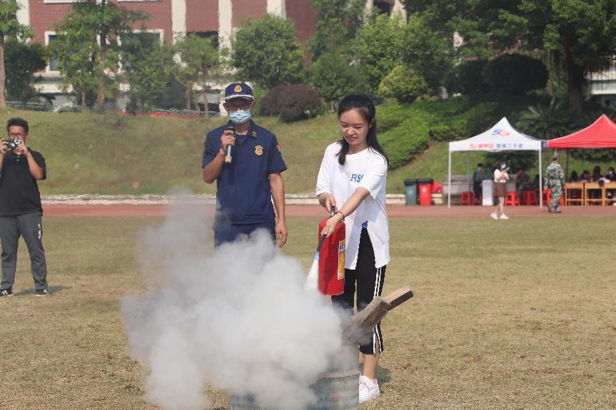 隨后,在消防特勤隊(duì)員的指導(dǎo)下,部分師生員工代表親身實(shí)踐體會(huì)使用滅火器滅火的過(guò)程。面對(duì)熊熊燃燒的火堆,師生代表們神情專注、沉著應(yīng)對(duì),正確地按照滅火的步驟和方法,將汽油燃起的濃煙大火成功的迅速撲滅。本次參與演練的師生員工都得到很好的技能鍛煉與消防知識(shí)提升,演練活動(dòng)達(dá)到預(yù)期效果。