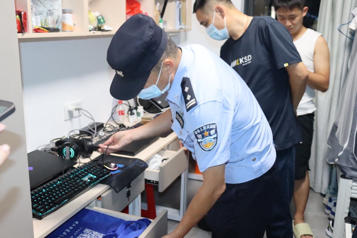 此次校警聯(lián)動(dòng)活動(dòng),圍繞“校園安全隱患排查”進(jìn)行,我院保衛(wèi)處處長(zhǎng)陳勝軍與派出所民警相互溝通校園安全穩(wěn)定工作情況,帶領(lǐng)派出所民警仔細(xì)檢查了學(xué)校的物防、技防、人防等配備情況,重點(diǎn)對(duì)學(xué)生宿舍存在的安全隱患排查,包括宿舍樓樓道設(shè)施安全、宿舍內(nèi)用電安全、違禁物品等進(jìn)行排查,檢查過程中提醒學(xué)生加強(qiáng)對(duì)財(cái)物的保管,提高防詐意識(shí),同時(shí)就檢查發(fā)現(xiàn)存在問題面對(duì)面與同學(xué)普及預(yù)防安全隱患知識(shí)。