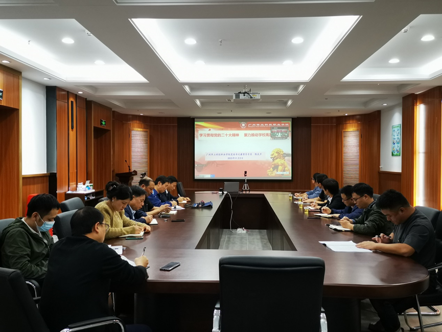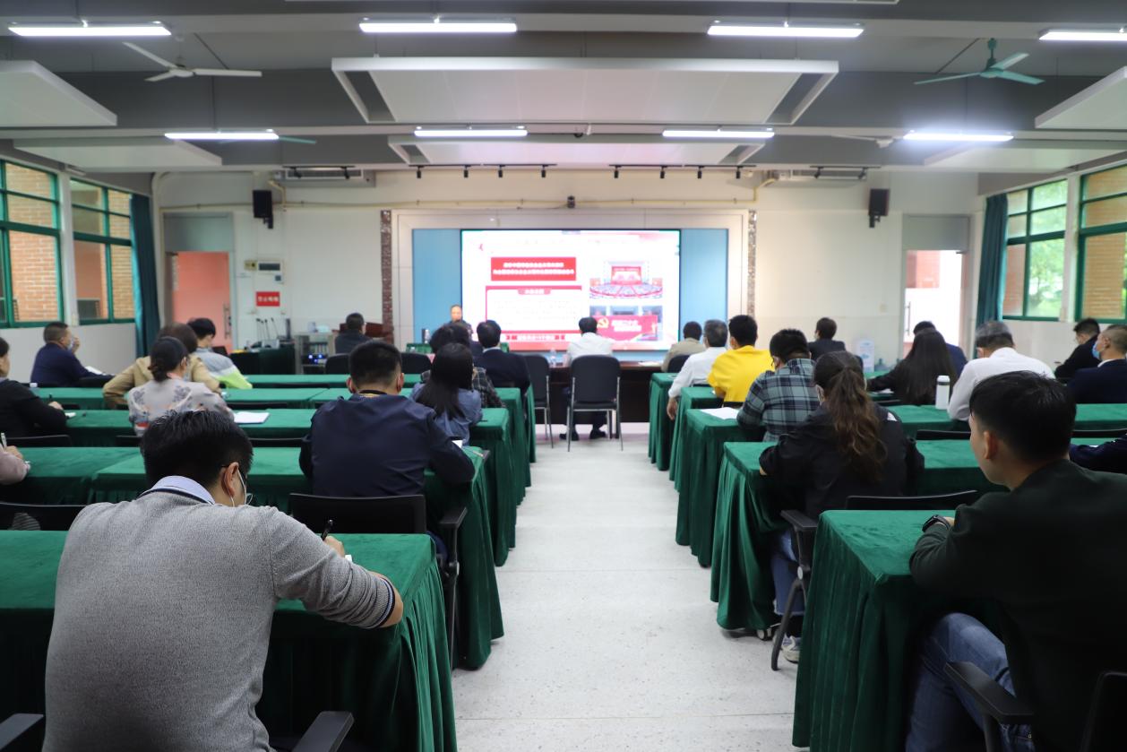 校長易健民,黨務(wù)副校長馬俊,副校長陳顯強(qiáng),黨委副書記高堯來,校長助理葉春桃以及各部門主要負(fù)責(zé)人,二級(jí)學(xué)院黨組織負(fù)責(zé)人參加了會(huì)議。學(xué)校黨委副書記王洪艷,校長助理郭仲先和云浮校區(qū)黨務(wù)干部及各部門負(fù)責(zé)人,通過視頻連線參加了學(xué)習(xí)。