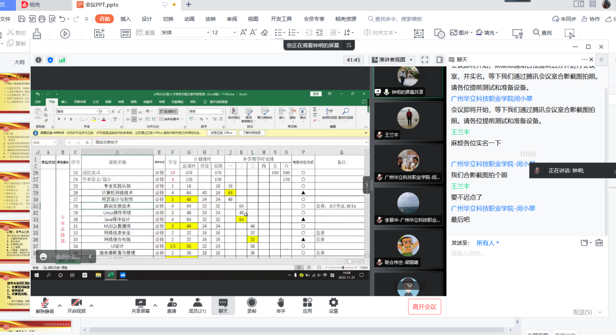 接著由各系主任按順序匯報(bào):計(jì)算機(jī)網(wǎng)絡(luò)技術(shù)專業(yè)、軟件技術(shù)專業(yè)、計(jì)算機(jī)應(yīng)用專業(yè)、人工智能專業(yè)以及大數(shù)據(jù)技術(shù)專業(yè)和物聯(lián)網(wǎng)應(yīng)用技術(shù)專業(yè)。在各系主任匯報(bào)完本系對(duì)22級(jí)人才培養(yǎng)的方案后,廣東輕工職業(yè)技術(shù)學(xué)院的專家以及企業(yè)專家結(jié)合市場(chǎng)及崗位需求對(duì)各專業(yè)的人才培養(yǎng)方案都給出了自己的想法和建議。與會(huì)老師都認(rèn)真聽(tīng)取各方意見(jiàn),深入交流。