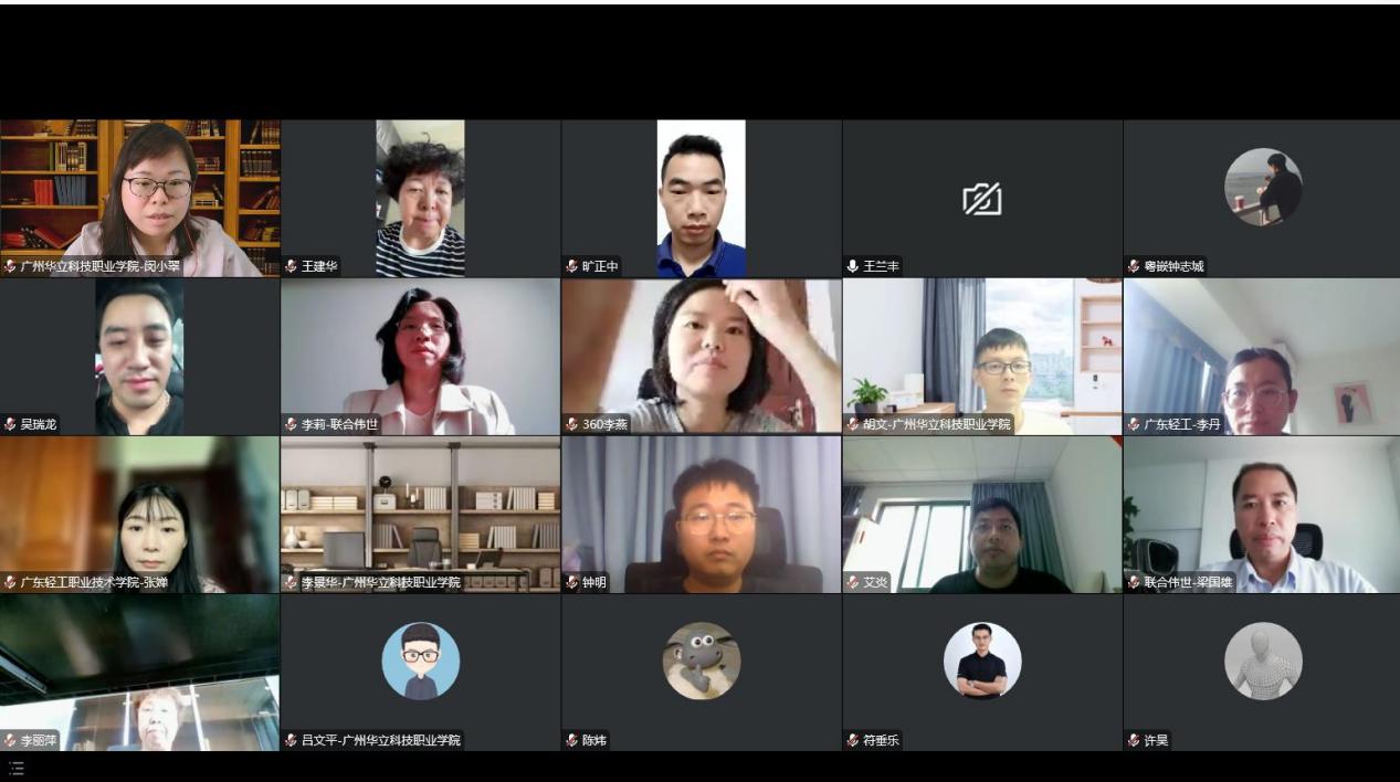 2022年11月21日上午,計(jì)算機(jī)學(xué)院組織召開(kāi)22級(jí)人才培養(yǎng)方案論證會(huì),此次會(huì)議連線云浮校區(qū)。邀請(qǐng)廣東輕工職業(yè)技術(shù)學(xué)院信息技術(shù)學(xué)院教學(xué)副院長(zhǎng)張嬋、工業(yè)軟件教研室翟鴻雁教授、云計(jì)算教研室李丹主任、智能產(chǎn)品教研室艾炎主任、人工智能教研室許昊主任,中國(guó)高科集團(tuán)股份有限公司產(chǎn)教融合事業(yè)部華南區(qū)負(fù)責(zé)人吳瑞龍先生,北京聯(lián)合偉世科技股份有限公司教研總監(jiān)李莉女士、北京聯(lián)合偉世科技股份有限公司銷售總監(jiān)梁國(guó)雄先生,360集團(tuán)高級(jí)銷售經(jīng)理李燕女士,廣州粵嵌通信科技股份有限公司鐘志誠(chéng)先生,廣東宏圖信息技術(shù)有限公司曠正中先生參加線上討論。學(xué)院院長(zhǎng)王建華教授、學(xué)科帶頭人李麗萍教授、教學(xué)主任閔小翠副教授以及各系主任等參加會(huì)議。會(huì)議由行政副主任王蘭豐老師主持。