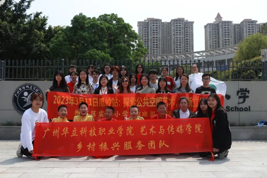 廣州華立科技職業(yè)學(xué)院藝術(shù)與傳媒學(xué)院鄉(xiāng)村振興團(tuán)隊(duì)在試驗(yàn)小學(xué)與研學(xué)代表留念