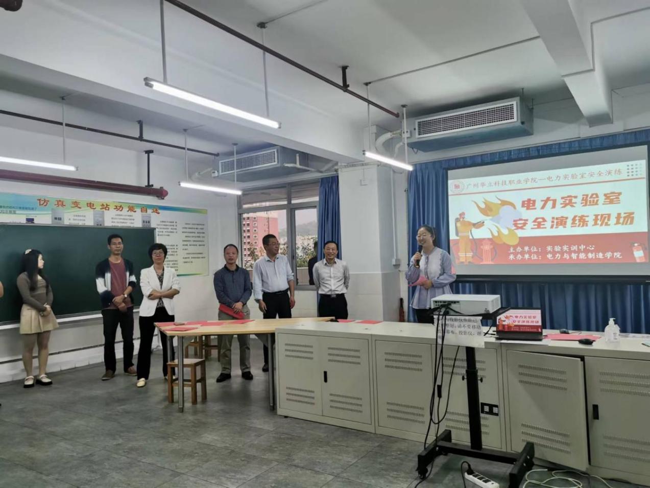 為貫徹“預(yù)防為主,防消結(jié)合”的方針,落實學(xué)校安全工作會議精神,切實提高師生實驗室安全意識,增強實驗室安全防范能力和處置突發(fā)事件的能力。3月24日上午,我校實訓(xùn)中心、電力與智能制造學(xué)院、保衛(wèi)處在學(xué)校綜合樓508開展了一次全過程、多部門聯(lián)動的電力實驗室安全演練。學(xué)校黨委書記陳良聲、副校長高堯來、校長助理葉春桃、實訓(xùn)中心主任張磊、保衛(wèi)處處長陳勝軍、電力與智能制造學(xué)院院長王秀敏、實訓(xùn)中心和保衛(wèi)處老師、學(xué)生代表等參加了本次演練。