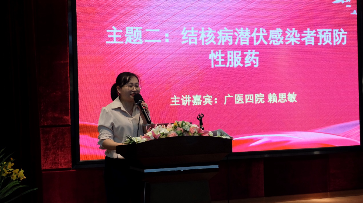 接著,廣州醫(yī)科大學附屬第四醫(yī)院主治醫(yī)師賴思敏博士現(xiàn)場為師生生動地介紹了“什么是結核分枝桿菌潛伏感染者?為什么進行預防性治療?學生為什么是預防性治療的重點人群?”等結核病感染者預防性服藥管理的常見問題。