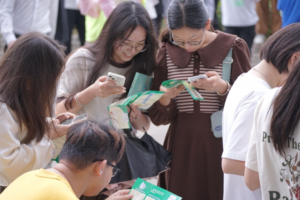 現(xiàn)場義診和健康科普活動當天,學校綜合樓LED電子屏滾動播放“你我共同努力 終結結核流行”、“積極防治結核病,依法管理結核病”等宣傳主題,懸掛了多幅宣傳主題和標語,擺放了結核病防治知識宣傳展板。下午三點活動開始,西區(qū)圖書館前廣場現(xiàn)場播放專題視頻、解答師生咨詢、有獎問答現(xiàn)場抽獎等,宣傳人員向師生發(fā)放宣傳畫冊、結核病防治讀本、折頁等資料。