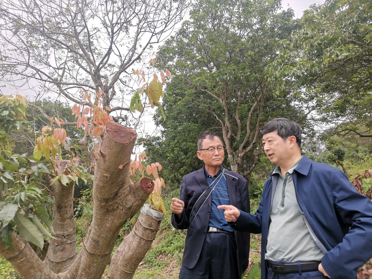 易健民校長(zhǎng)考察我院駐鎮(zhèn)幫鎮(zhèn)科研團(tuán)隊(duì)在增城區(qū)馬屋村的鐵皮石斛生態(tài)種植示范基地