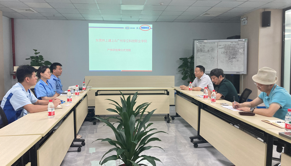 2023年5月18日,廣州華立科技職業(yè)學院易健民校長、科研處徐中海副處長、電力與智能制造學院王秀敏院長、楊軍副主任等一行人,前往東莞井上建上汽車部件有限公司舉行了產(chǎn)學研合作基地授牌儀式。東莞井上建上汽車部件有限公司黃敬寧副總經(jīng)理、人事部李曉明經(jīng)理、開發(fā)部陳海蘇經(jīng)理、生產(chǎn)部李向輝工程師對易校長一行人的到來表示熱烈歡迎。