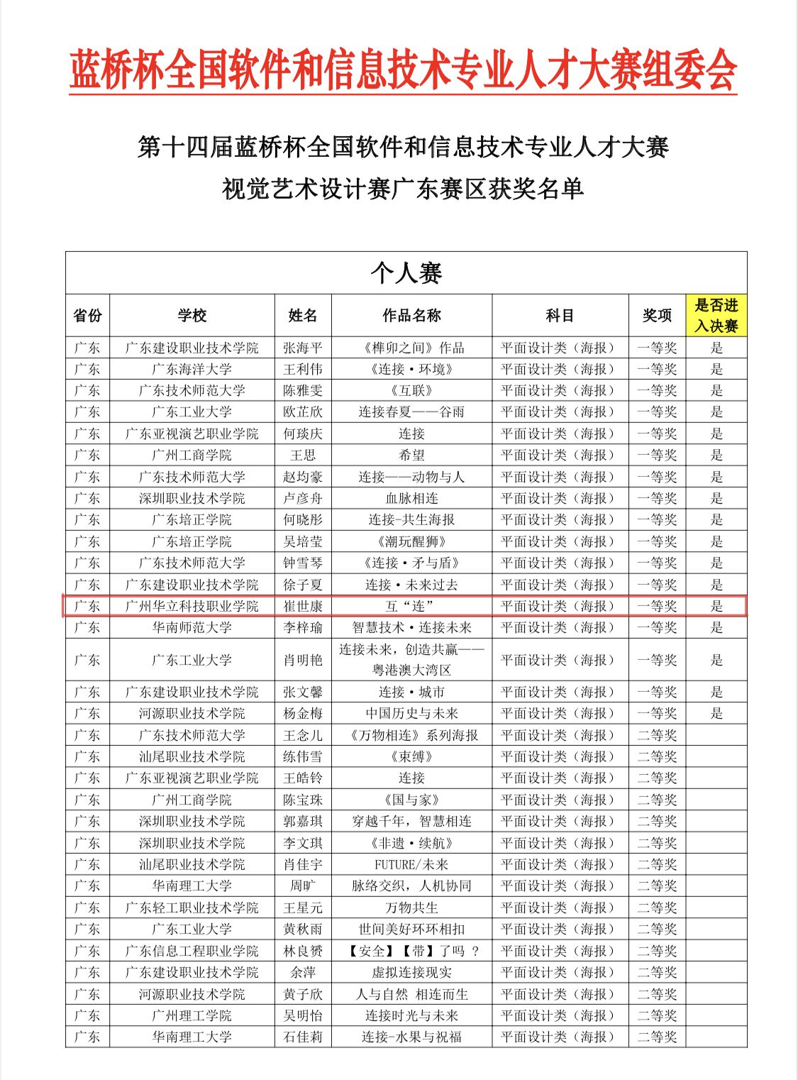 【喜報】我校學(xué)生在第十四屆“藍橋杯全國軟件和信息技術(shù)專業(yè)人才大賽——視覺藝術(shù)設(shè)計賽”廣東賽區(qū)喜獲佳績