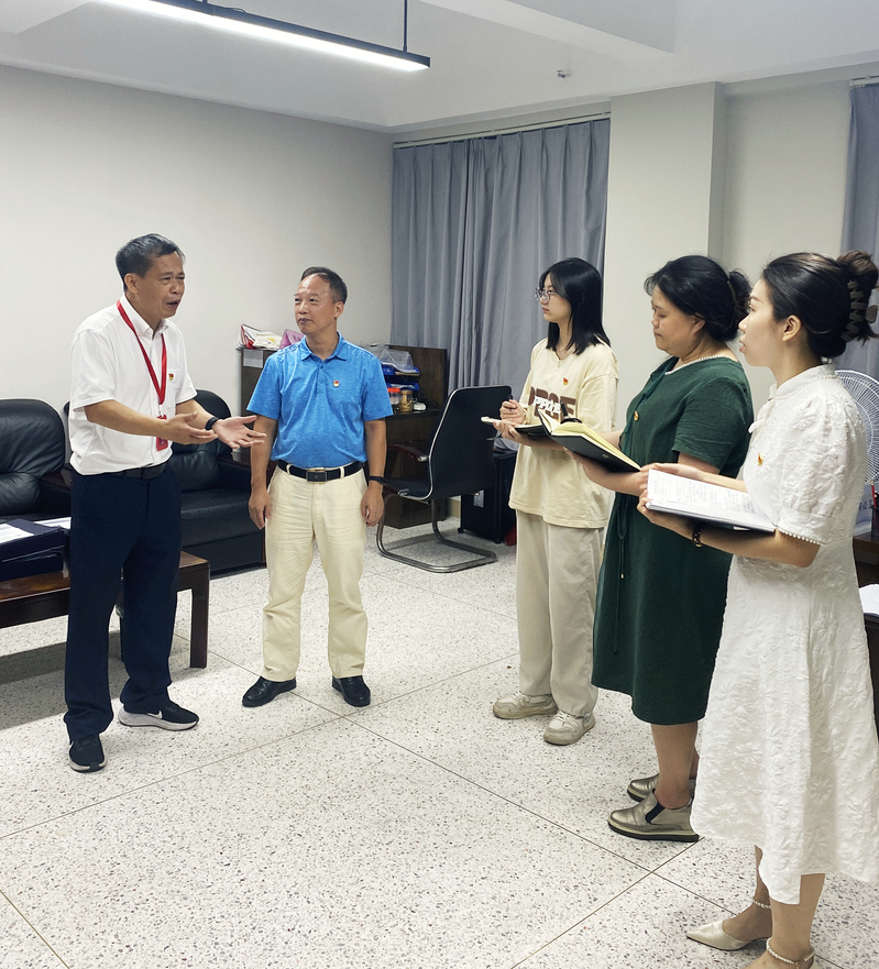 羅紀(jì)旋組長(左一)督促落實(shí)會議精神